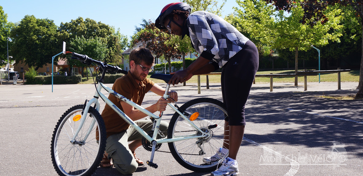 Rosiane avait déjà cherché des cours de vélo pour adultes il y a quelques années : « le plus proche que j’avais trouvé était Tours ! C’était trop loin…». C’est justement à Tours, auprès de ses collègues du Collectif Cycliste 37, que Mon Cher Vélo est allé de former à la pédagogie cycliste en Mars 2014. « Avant de nous lancer, on voulait voir comment appliquer la méthode » précise Sébastien.