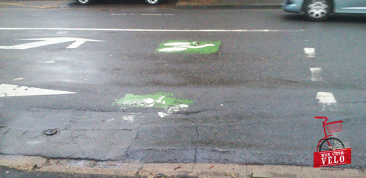 Exemple d’un sas vélo en très mauvais état, boulevard Joffre à Bourges