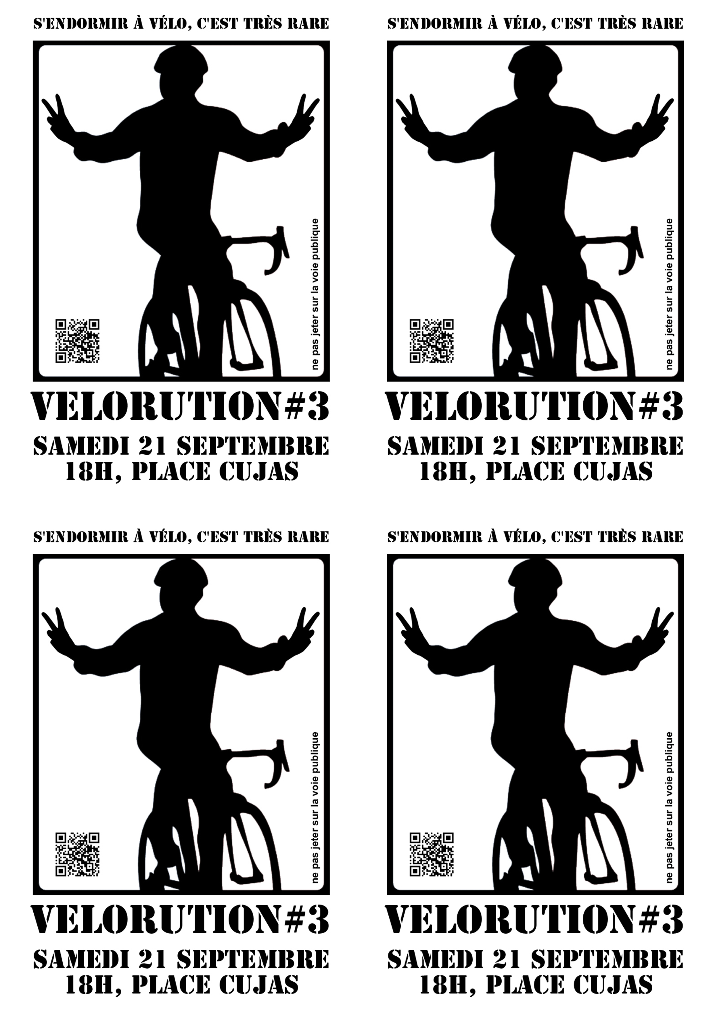 Une planche de tracts de présentation de l’association à déposer sur les vélos que vous croiserez ici ou là afin d’inviter un maximum de cyclistes à rejoindre notre collectif.