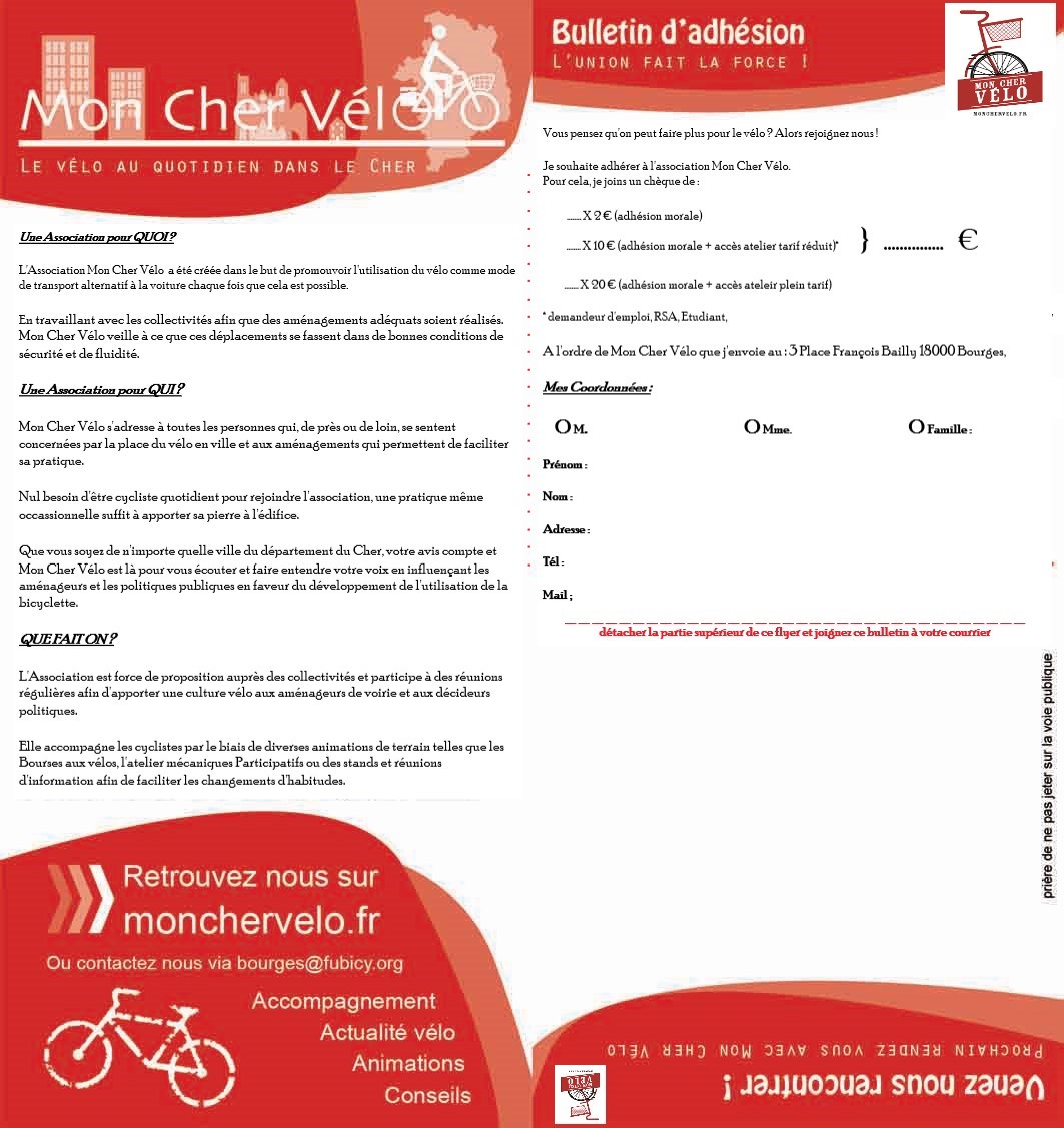 -Par courrier en nous envoyant votre cotisation (de préférence par chèque à l’ordre de Mon Cher Vélo) au 8 rue Eirik Labonne, 18000 Bourges.